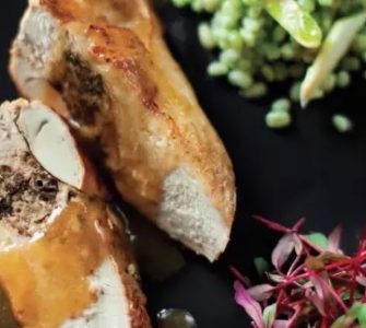 LA RECETTE D’AGNES BONAN – LE VIGO INGREDIENTS POUR 4 PERSONNES : 4 suprêmes de pintade avec la peau, et sans os. 250gr de girolles ou n’importe quel champignon. (frais ou surgelé). 1 échalote, 1 gousse...