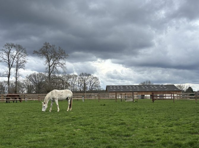 Ce barn, fonctionnel et haut de gamme, accueille de larges boxes, conçus pour dix chevaux. Des portes mobiles permettent un curage facile avec un tracteur. Les boxes s’ouvrent à l’extérieur sur des surfaces stabilisées qui débouchent sur d’immenses paddocks herbeux, encadrés de belles barrières en bois. « Dans cette propriété, nous accueillons 25 chevaux : nos chevaux âgés et des poulains. Nous y mettons aussi nos jeunes chevaux en vacances. C’est ici que se repose notre jument Tolède de Mescam qui a été montée par Kevin Staut, champion Olympique à Rio. C’est l’un des 20 meilleurs chevaux du monde. Elle a sauté jusqu’à 1m 60. Elle est maintenant à la retraite », poursuit la propriétaire. Cette jument hors pair peut maintenant s’enorgueillir de faire naître de futurs champions. « Chaque année, nous accueillons trois ou quatre juments qui portent ses embryons », complète Caroline Benguigui, dont les yeux pétillent dès lors qu’elle parle de sa jument de cœur. L’écurie Harcour Compétition est une écurie tournée vers le concours hippique de haut niveau , (saut d’obstacles). Dans la première structure, à Torcé, les chevaux sont débourrés et mis progressivement au travail pour ensuite commencer les concours à 4 ans. Quatre personnes se relaient pour travailler sur les deux structures.